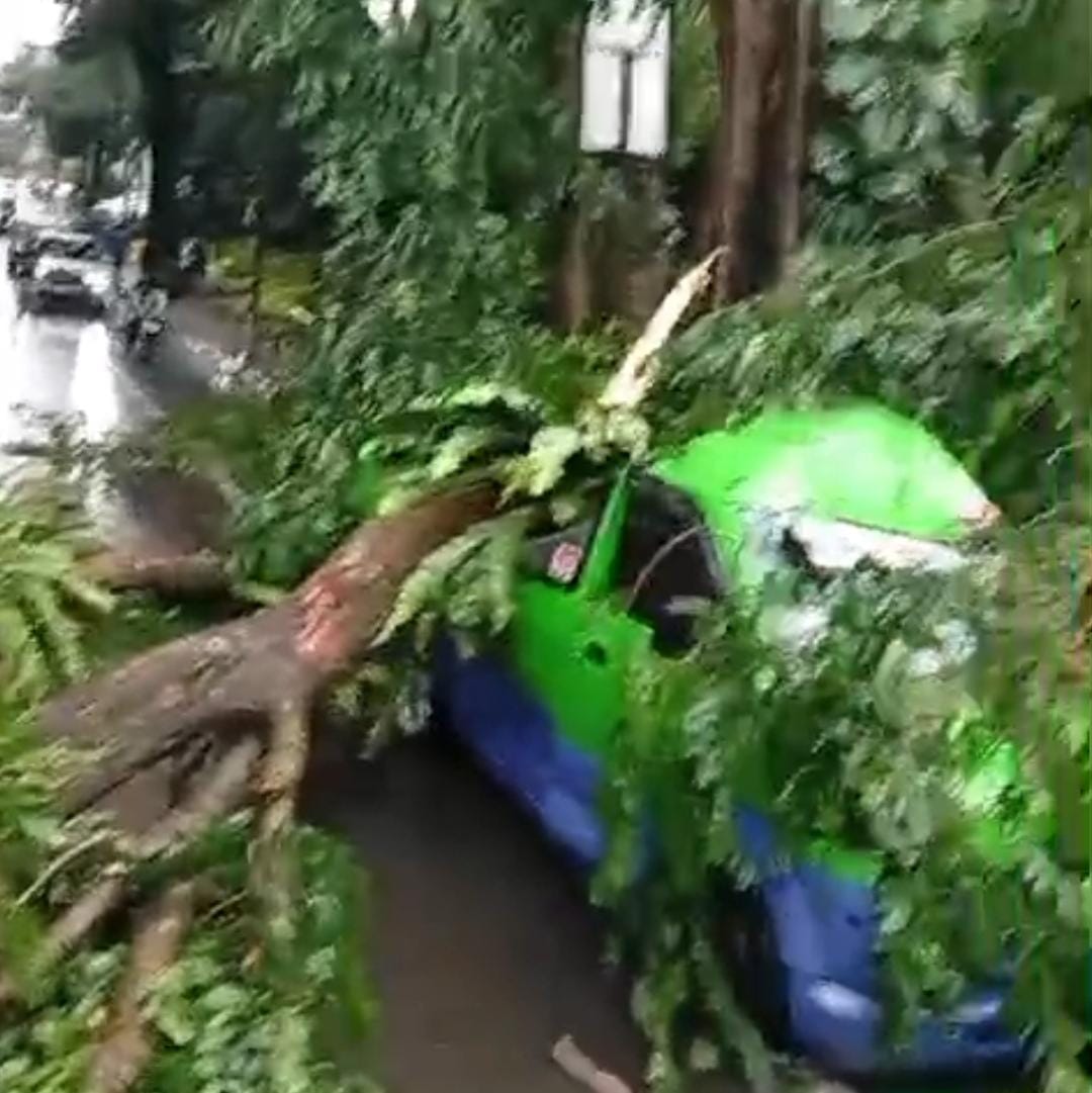 Angin Kencang Terjang Kota Bogor, Pohon Tumbang Timpa Angkot di Sukasari, Lalu Lintas Sempat Lumpuh